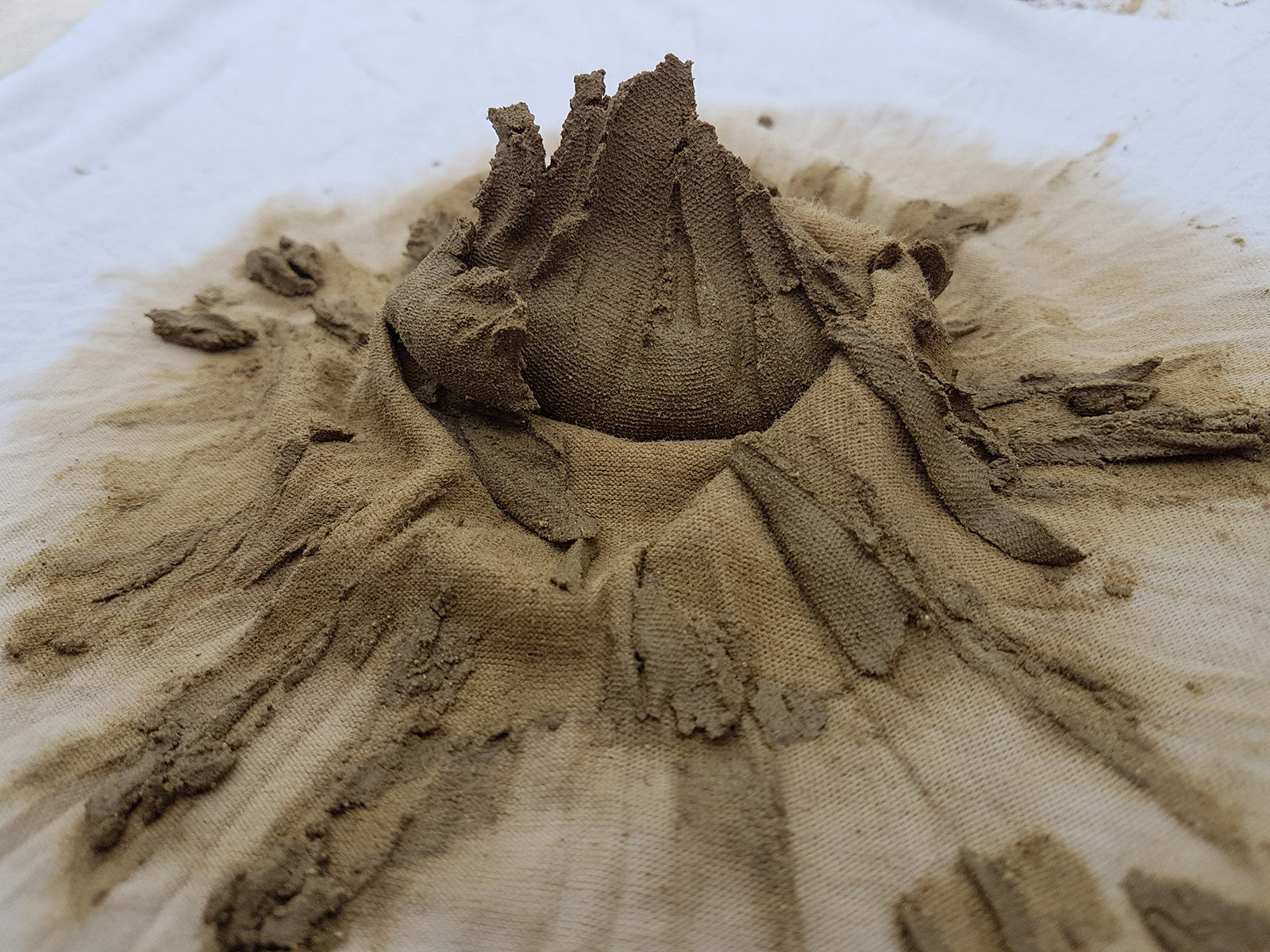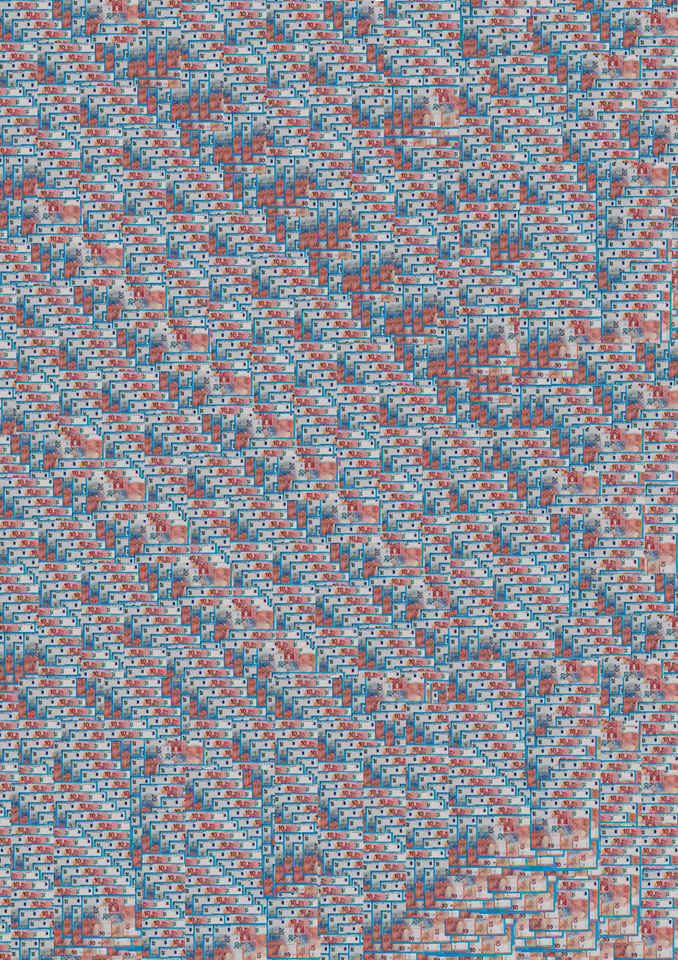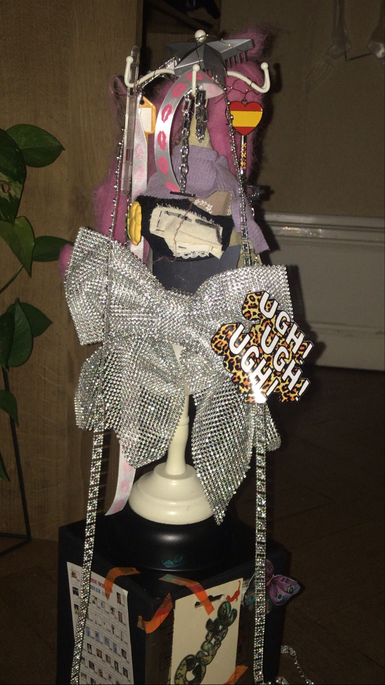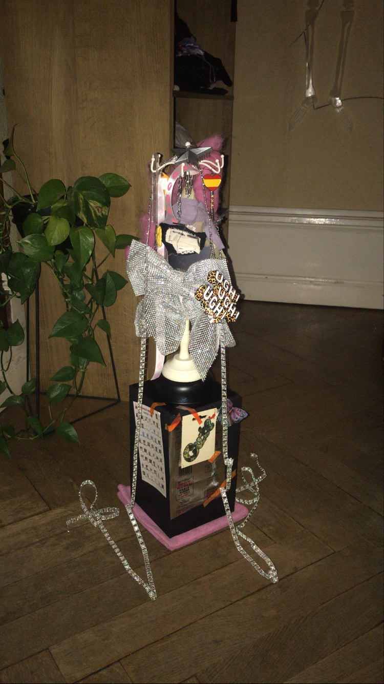 Pour marquer cette fin d’année inhabituelle, Gwendoline a fait de la pâte à papier à partir de vieux cahiers, notes et brouillons. Par la suite, elle a joué avec les formes et avec l’encre bleue, issue de la pochette de son ancien dossier scolaire de maternelle.