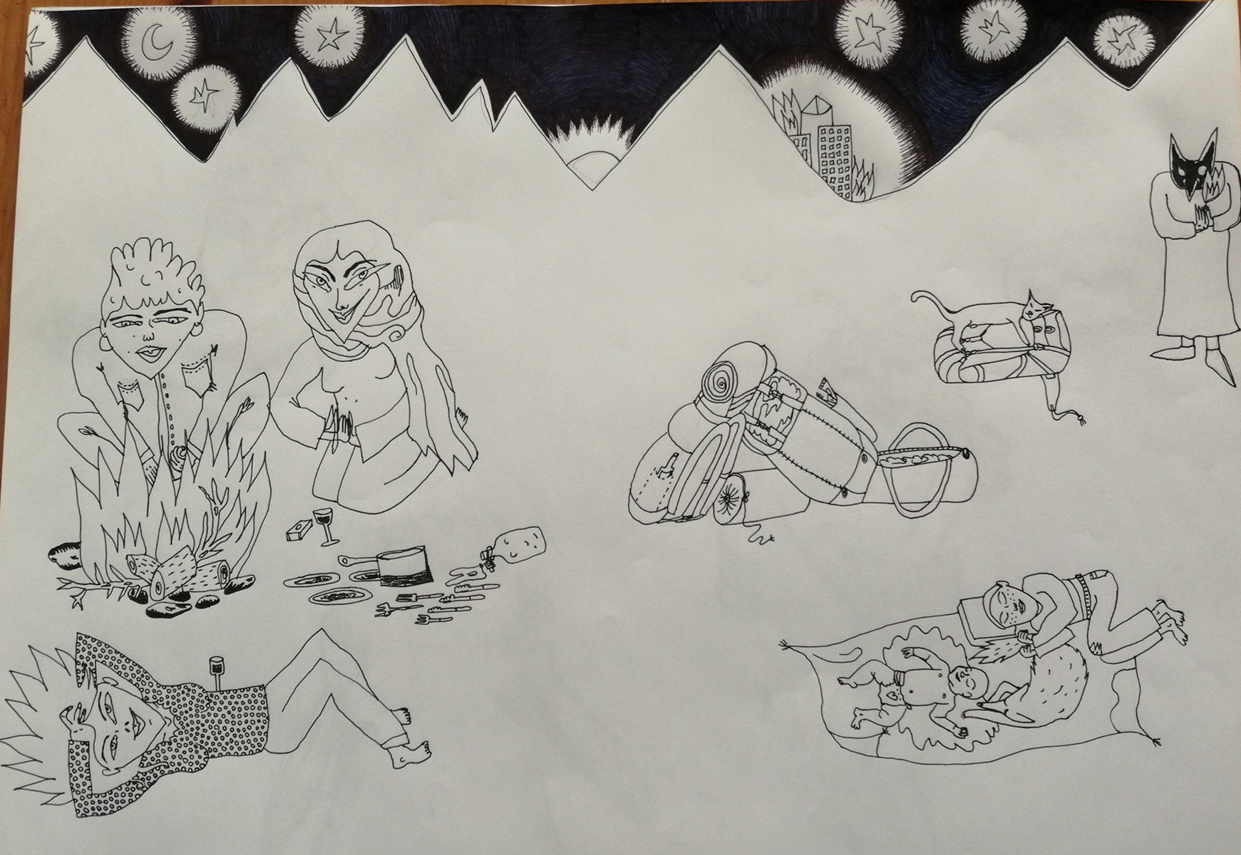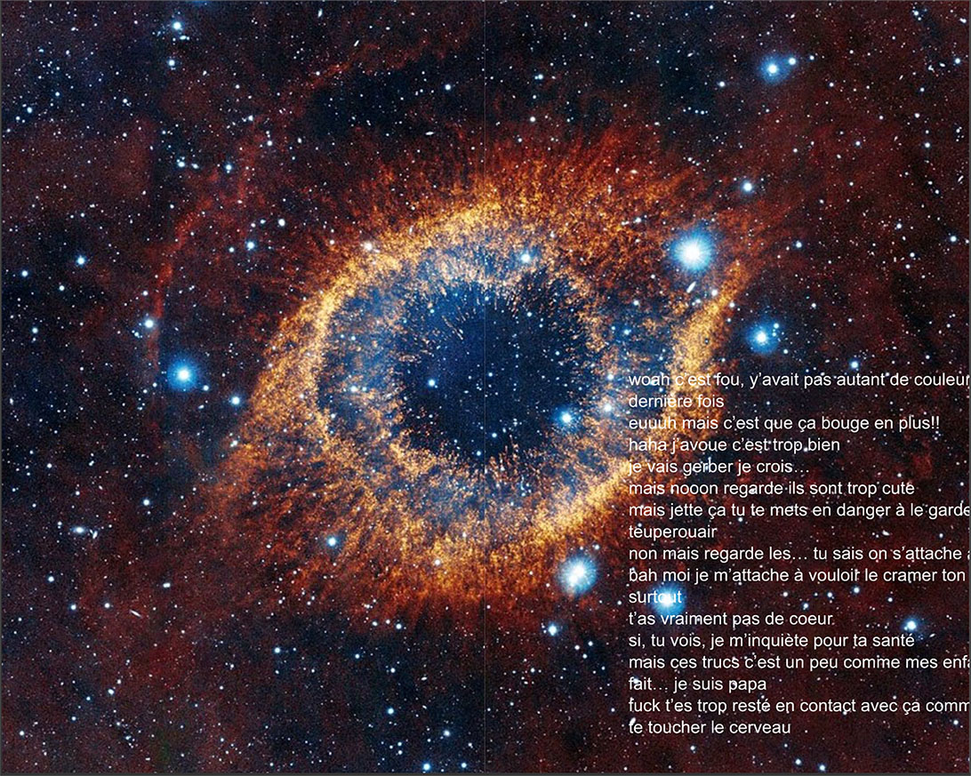 Le mois de juin et l’année universitaire se terminent dans quelques jours et avec eux les livraisons des « Confins de l’ESAAA ». Pendant ces 15 dernières semaines, image après image, texte, son, vidéo… nous avons collectivement arpenté les espaces-temps de nos différents confinements. Nous avons visité les multiples mondes dans lesquels les un·e∙s les autres étaient immergé·e∙s, ce qu’ils et elles y faisaient pousser, objets, poèmes, peintures, récits, chansons, dessins, photos, gestes, dispositifs… Et il en ressortait, confins après confins, de proliférantes pistes pour « vivre avec le trouble » – titre du livre de Donna Haraway que les excellentes Éditions des mondes à faire viennent de publier en français.