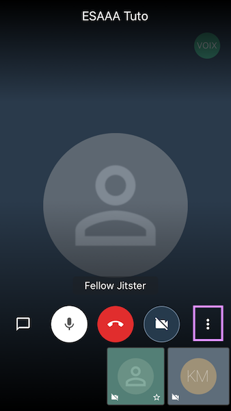 Vous trouverez certaines options comme le choix de la source audio (en cas de larsen, si votre micro ne fonctionne plus et que vous utilisez un casque, etc…) ou l’activation du mode bande passante réduite pour les petites connexions en cliquant sur les 3 petits points en bas à droite de l’écran. L’option afin d’utiliser la caméra avant ou arrière de votre téléphone se trouve dans les options > plus d’options > activer / désactiver la caméra.