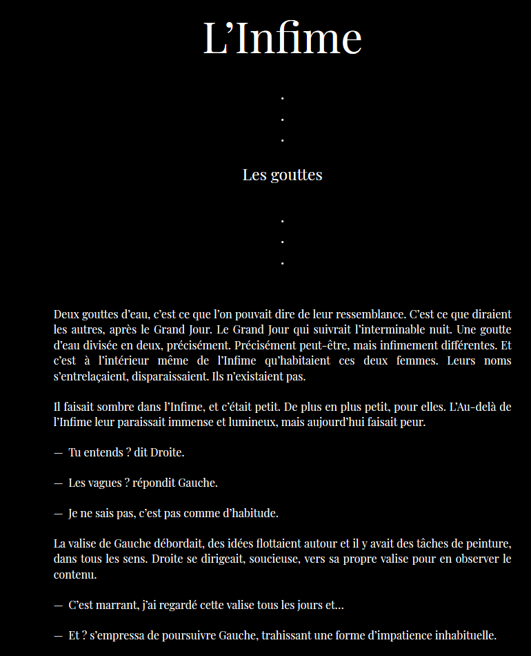 Les mémoires ont été présentés à Camille Pageard*, hier en visio-conférence. Ce dernier fait un rapport très positif quant à l’encadrement de ces travaux, relevant la qualité de l’écriture et des éditions, la richesse des formats et des registres littéraires, la mise en perspective des méthodologies de recherche dans l’objet et son contenu. Il note aussi la résonnance de nombreuses problématiques avec l’actualité des idées. Enfin, il a pris un grand plaisir à discuter avec les étudiant∙e∙s qui s’étaient bien préparé∙e∙s à cette présentation. (Merci à toute l’équipe d’enseignant∙e∙s, à Isabelle Labarthe, Gaël Paradis, Camille Garnier pour l’accompagnement !)