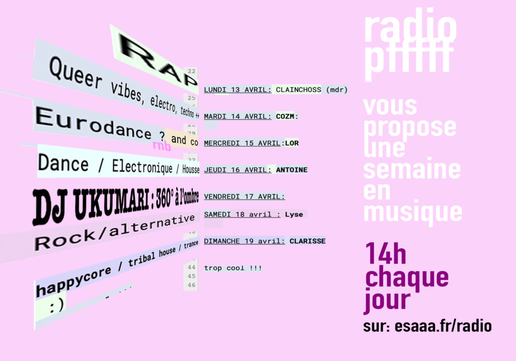 Le mois de juin et l’année universitaire se terminent dans quelques jours et avec eux les livraisons des « Confins de l’ESAAA ». Pendant ces 15 dernières semaines, image après image, texte, son, vidéo… nous avons collectivement arpenté les espaces-temps de nos différents confinements. Nous avons visité les multiples mondes dans lesquels les un·e∙s les autres étaient immergé·e∙s, ce qu’ils et elles y faisaient pousser, objets, poèmes, peintures, récits, chansons, dessins, photos, gestes, dispositifs… Et il en ressortait, confins après confins, de proliférantes pistes pour « vivre avec le trouble » – titre du livre de Donna Haraway que les excellentes Éditions des mondes à faire viennent de publier en français.
