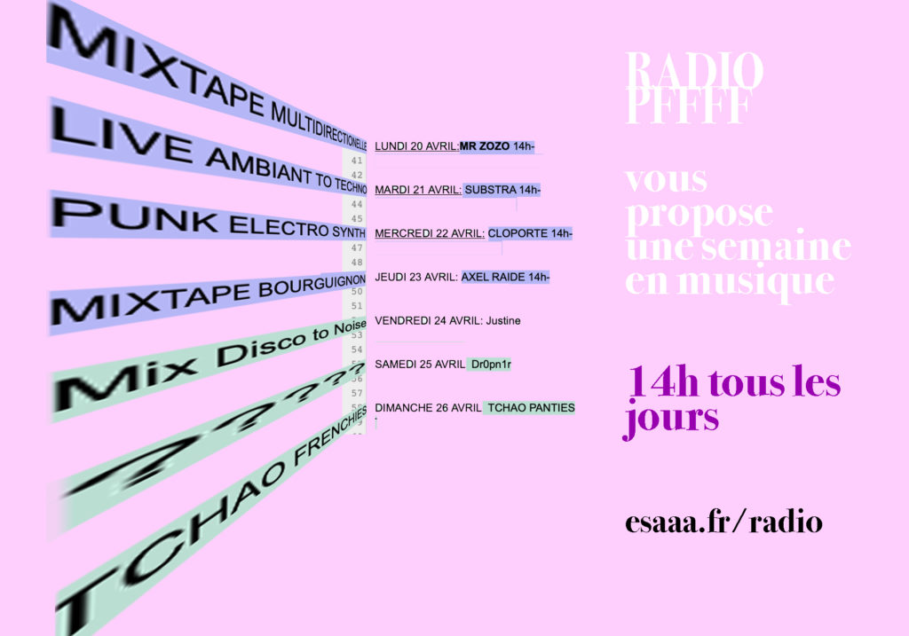La semaine prochaine, les étudiant∙e∙s en 5e année Design & Espace participeront à un workshop situé de fin d’année. Du 2 au 10.07.2020, ils et elles seront à Vierzon (18) et travailleront avec l’aide de l’artiste Dorian Degoutte (diplômé de l’ESAAA) et de son Association Vierzon Cinéma.
