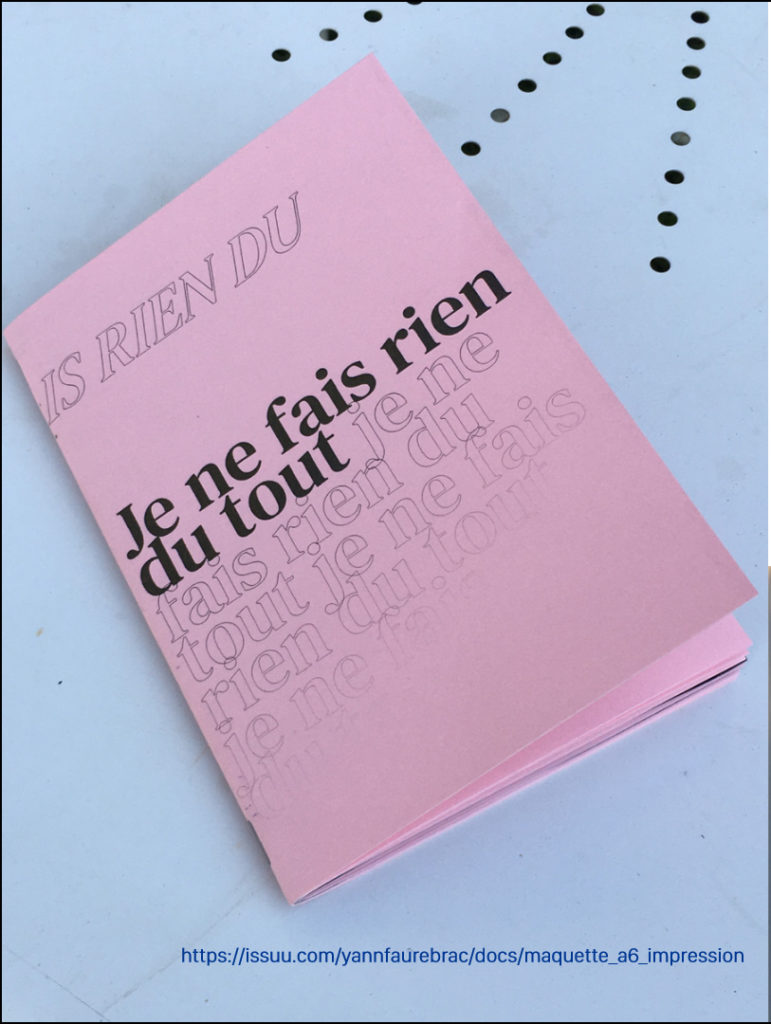 *Camille PAGEARD est un historien d’art. Enseignant à l’École Nationale Supérieur des Beaux-Arts de Lyon, son travail et ses recherches lient actuellement l’histoire de l’art, de l’édition et de la poésie contemporaine. Il a publié plusieurs textes dans des revues, aussi bien que dans des publications collectives. De 2014 à 2018, il a collaboré à la maison d’édition <o> future <o> http://f-u-t-u-r-e.org/r/00-Bat.md où il a dirigé la publication de plusieurs ouvrages. Il a récemment traduit avec Jean-François Caro deux livres de David Antin, Essais choisis sur l’art et la littérature et parler aux frontières, tous deux publiés en 2017, et que nous avons à la bibliothèque !