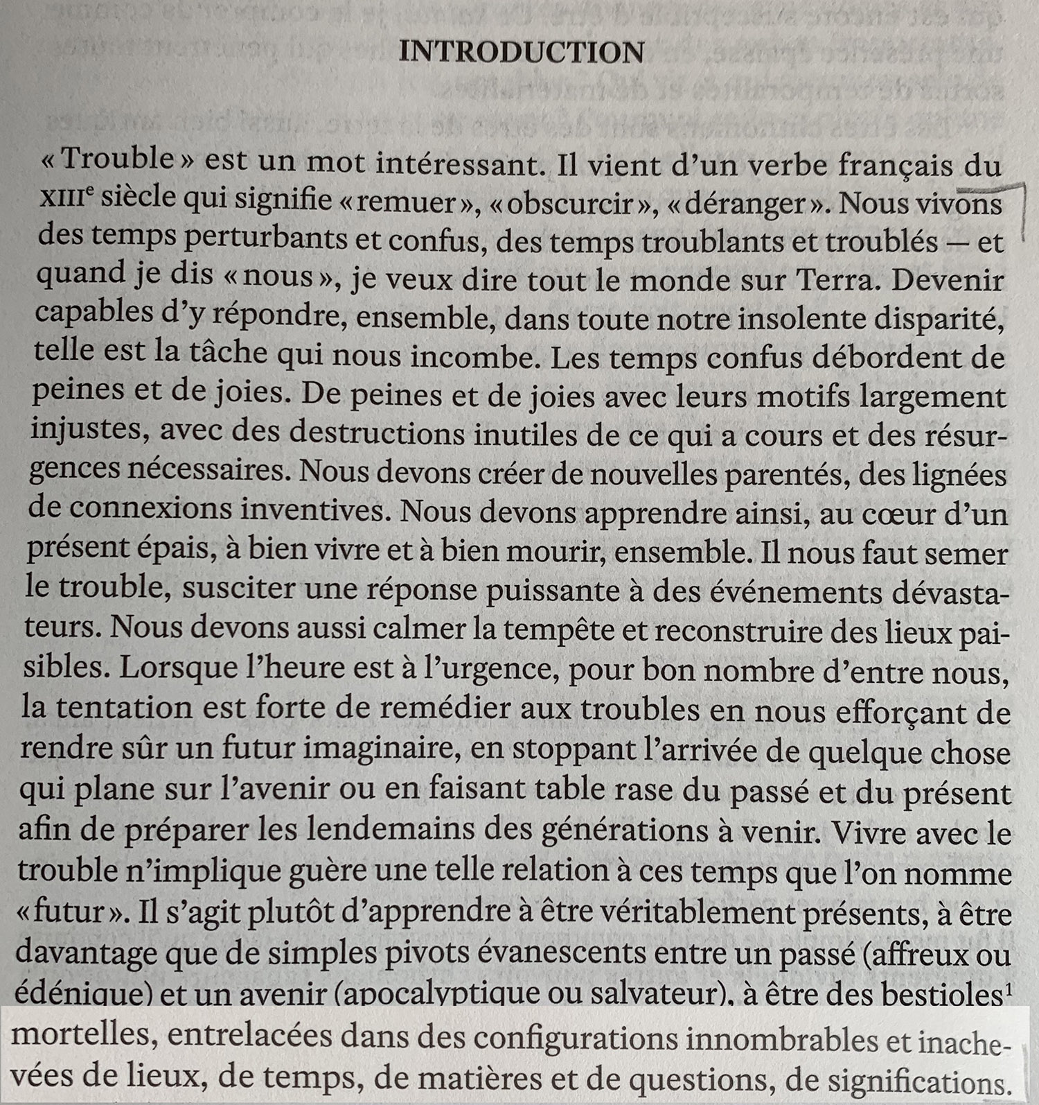 En guise de conclusion des « Confins de l’ESAAA » (conclusion ouverte, jamais définitive), voici ci-dessous ce qu’écrit Donna Haraway en introduction de Vivre avec le trouble. Cela peut paraître paradoxal de donner une introduction pour une conclusion, mais nous serons bientôt en septembre, après les deux petits mois d’été, et nous initierons alors une nouvelle année qui n’aura jamais été si nouvelle. Nous aurons donc besoin de toutes nos ressources collectives, de tous nos potentiels, et si d’ici là cette « introduction » a été digérée (« compostée » dirait Haraway), nous n’en aurons que plus de forces.