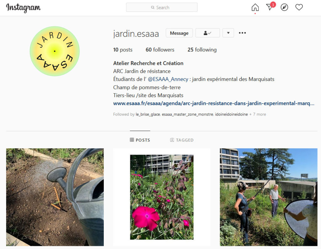 Pour suivre les avancées des travaux de l’équipe Jardin de résistance : @jardin.esaaa